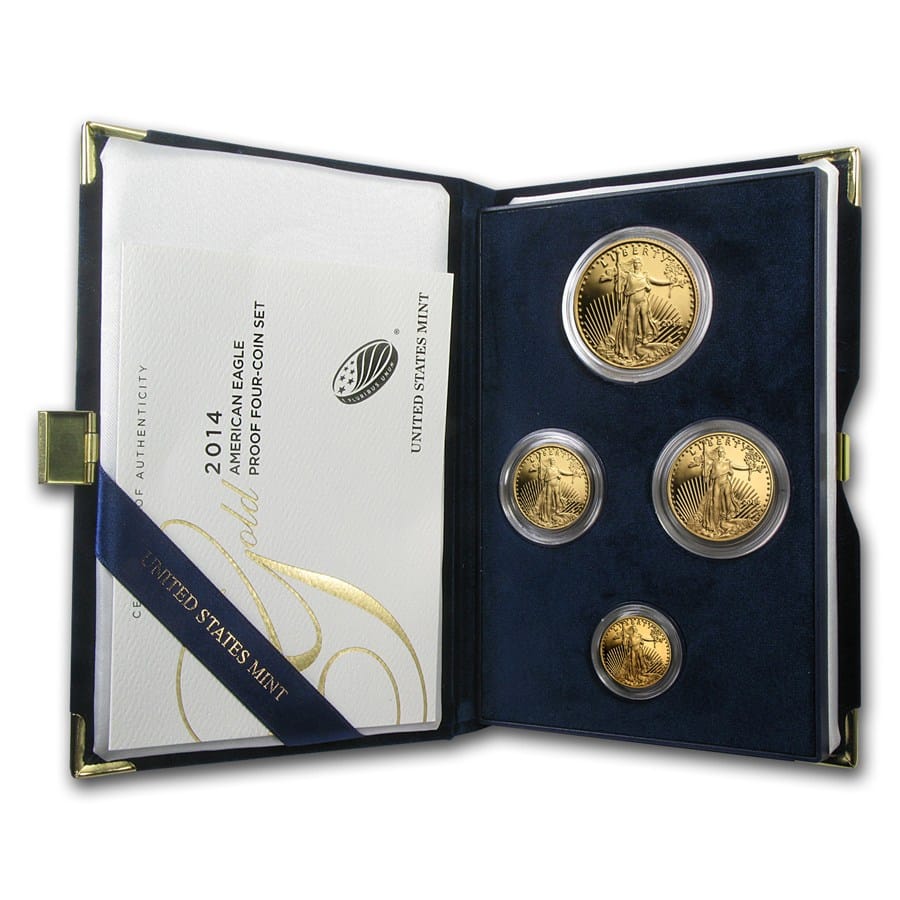 These uniquely packaged sets contain all four sizes of the Gold American Eagle coins in Proof condition.