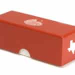 If purchased in a set of 10, the Texas Gold Rounds are packaged in a glossy orange chipboard box with velour flocked interior slots and vacuum-sealed with a holographic tamper-proof seal. Each gold round in the case is enclosed in an individual capsule holder to preserve its pristine condition. The motif of the round is repeated on the lid of the rectangular box, with the image of the Capitol displayed on the center and the geographic outline of Texas appearing in white on each end.