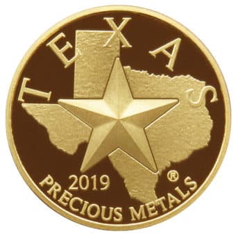 The Texas Gold Round is IRA eligible and measures 30 mm in diameter and 2.79 mm thick.